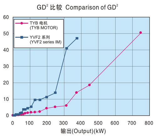 慣性力矩小,具有優(yōu)越的加減速特性。(與本公司YVF2系列變頻器專用IM相比降低30-75%)。