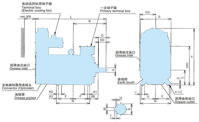 注3) 375kW及450kW基底速度1500 min-1的電機(jī)轉(zhuǎn)速范圍為1800~1500 min-1。而且,450kW基底速度1200 min-1的電機(jī)轉(zhuǎn)速范圍為1500-1200 min-1(★標(biāo)記)。