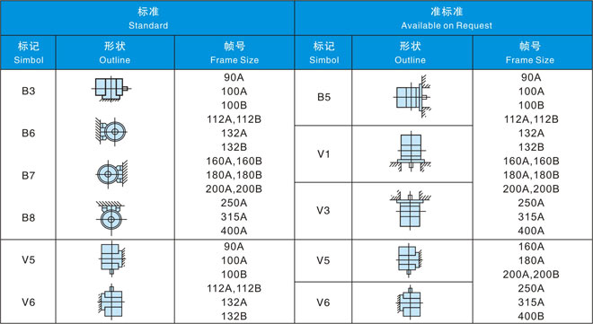 在同一輸出下中心高度比本公司YVF2系列變頻器專用IM下降2格。另外,電機(jī)重量也有大幅度減輕。(與本公司YVF2系列變壓器專用IM相比減輕32-57%